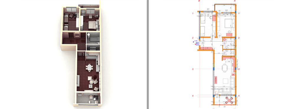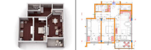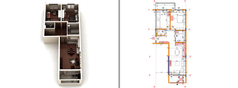 1 Dhomë dite | 3 Dhomë gjumi | 1 Kuzhinë + Tryezari | 2 Banjo | 1 Ballkon